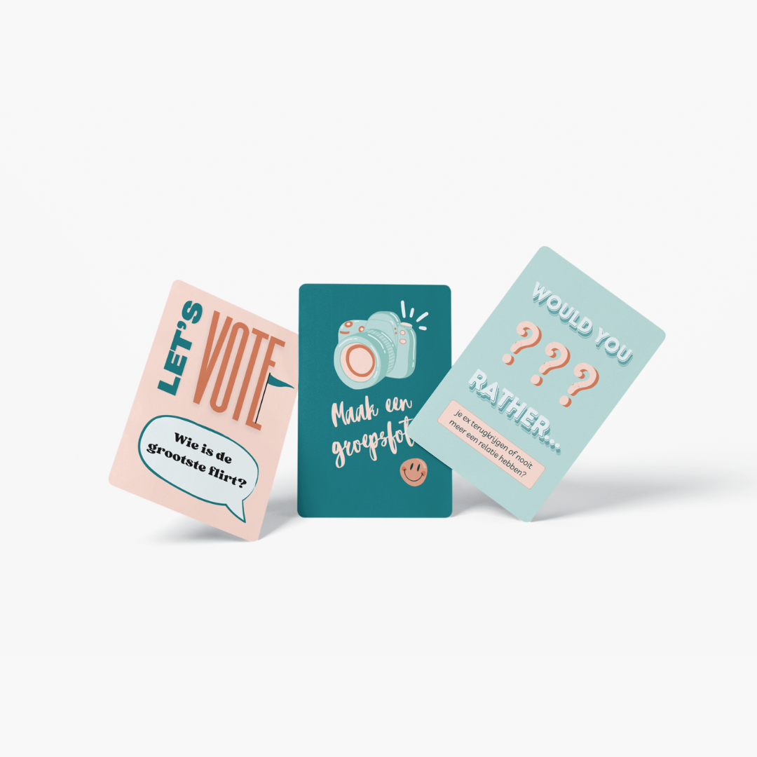 Heel simpel: we houden van avonden waar iedereen loskomt, verhalen deelt en samen keihard lacht. Maar laten we eerlijk zijn, soms heb je gewoon een duwtje nodig om het gesprek op gang te brengen. Daarom hebben we een spel gemaakt dat elk feestje of borrel nét dat beetje extra geeft.
